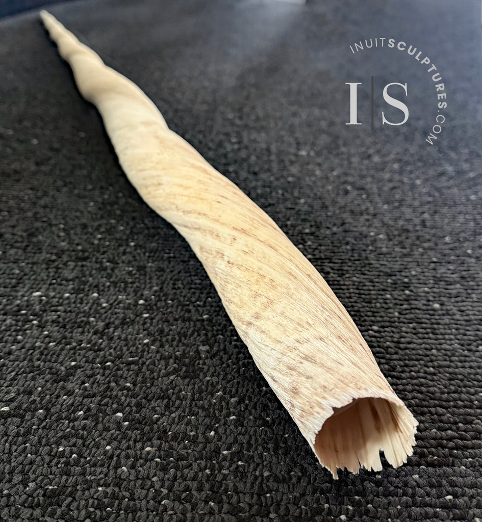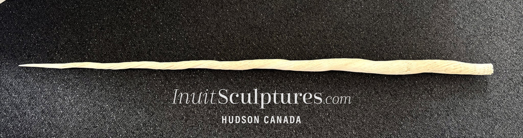 This is a perfect narwhal tusk with zero flaws or defects. Narwhal tusks are one of the most sought after subjects in Inuit art. They will definitely spark interest from your audience. In my experience with the gallery, a narwhal tusk really makes a statement.