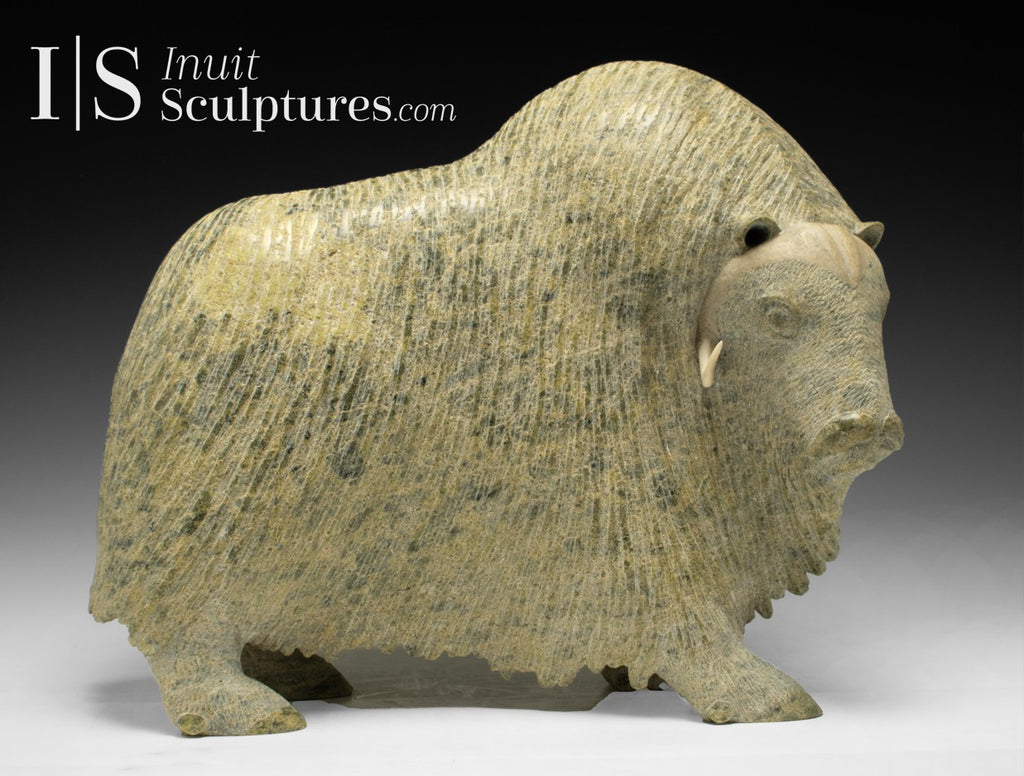 Here is an iconic Lucassie Ikkudluak Muskox by Kellypalik Qimirpik. His A-symmetrical muskox are in high demand.