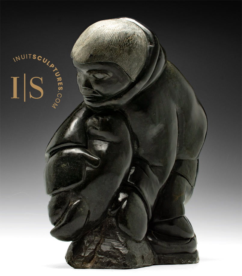 VINTAGE 120 lbs - 18" Eskimo Boy and Seal by Johnny Inukpuk (1911–2007) RCA