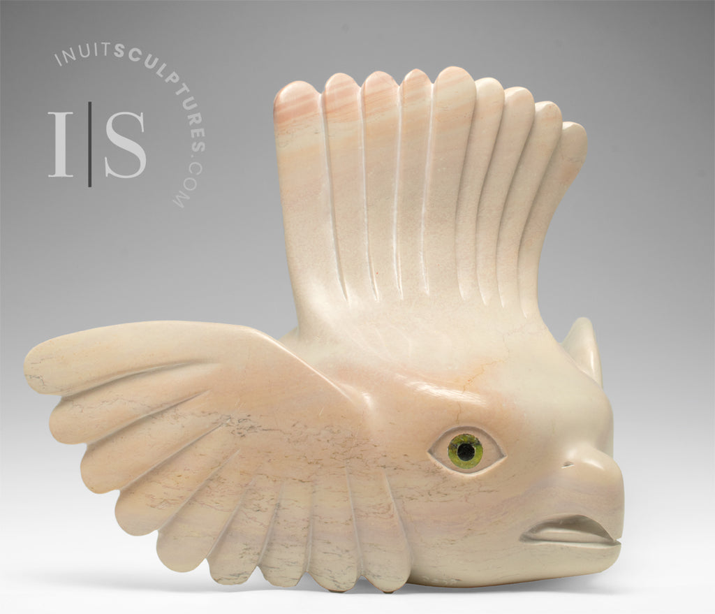 PEONY'S radiant green eyes compete for "Most Spectacular Eyes in an Inuit Carving".